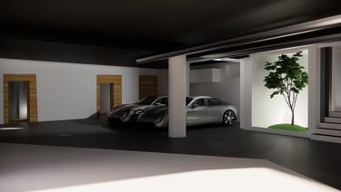 Un ambiente neutro e uniforme, con pavimenti e pareti dal colore bianco/beige e opachi, in contrasto con la lucentezza delle carrozzerie, che diventano così i veri protagonisti della scena.