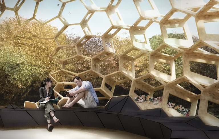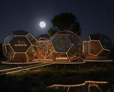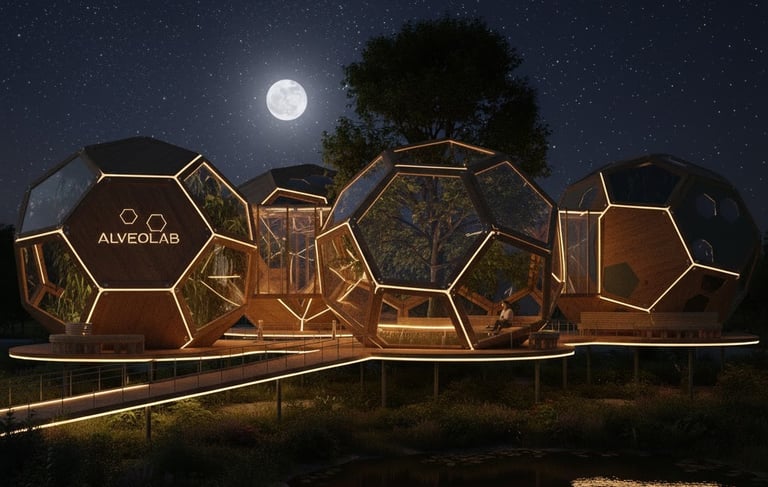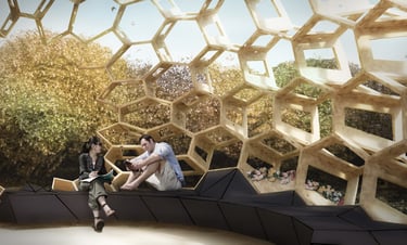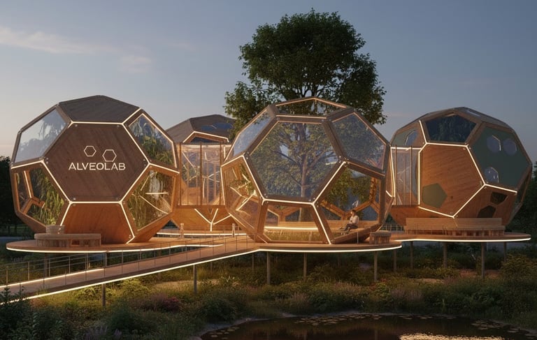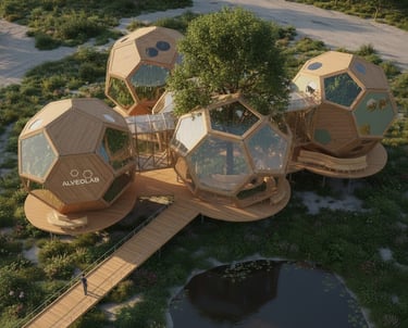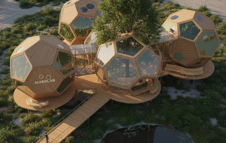 ALVEOLAB è una struttura urbana modulare, dal design futuristico ispirato alla forma dell’alveare, pensata per essere collocata nei parchi pubblici come elemento ludico, educativo e sociale.