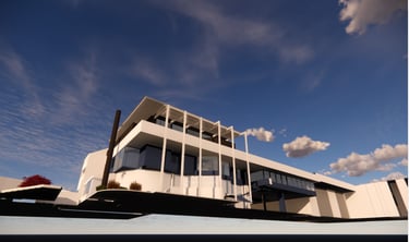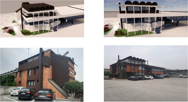 Tutto lo stabile verrà messo in risalto lungo tutta l'estensione in orizzontale con colori che vanno dal bianco, all'avion, al bruno corten, in modo da dare al visitatore che giunge dalla via d'accesso privata, l'idea della grandezza del consorzio.