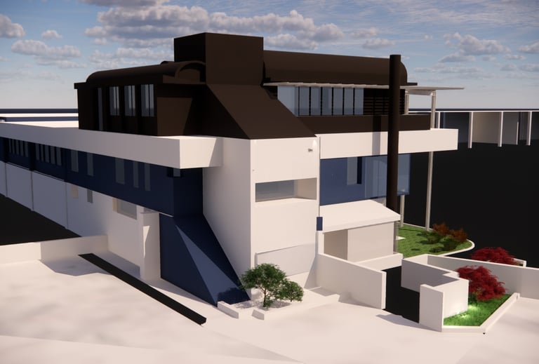 La scala di accesso esterna sarà anch'essa tinteggiata in avion così da caratterizzare l'ingresso sul fronte retro.