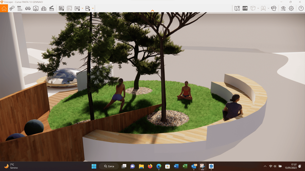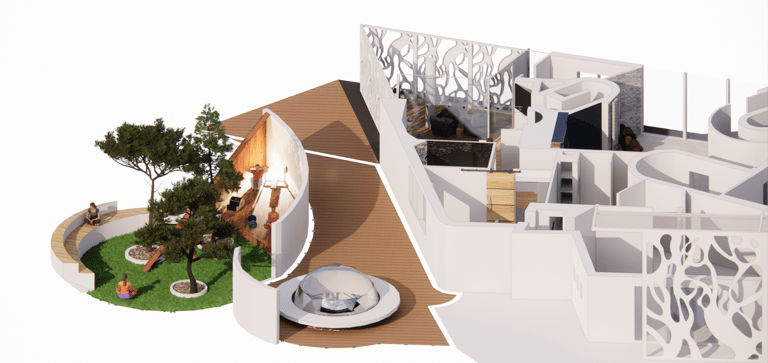 L'idea di integrare attività sportive all'aperto come yoga, trekking, ciclismo con un'estetica naturale, è un modo eccellente per arricchire l'esperienza turistica, creando un ambiente che promuove il benessere psicofisico, la socializzazione e la cultura. La presenza di spazi per esposizioni artistiche temporanee aggiunge un ulteriore valore culturale, offrendo visibilità a nuovi talenti e integrando la dimensione creativa e artistica nel progetto.