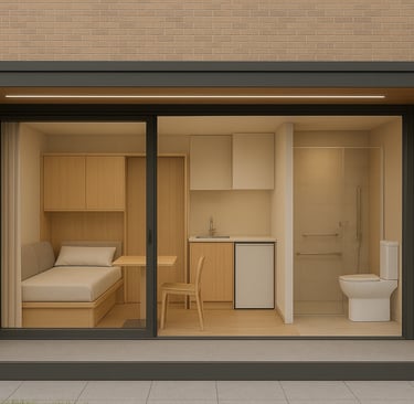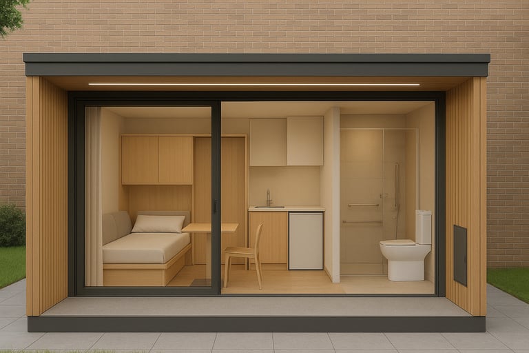 Si tratta di piccoli ambienti accessibili, autoportanti e completamente attrezzati, con arredi idonei alla mobilità ridotta e alle diverse disabilità. Consentono agli anziani di vivere in modo confortevole e protetto, garantendo al tempo stesso alla famiglia vicinanza, assistenza semplice e il rispetto della privacy reciproca.